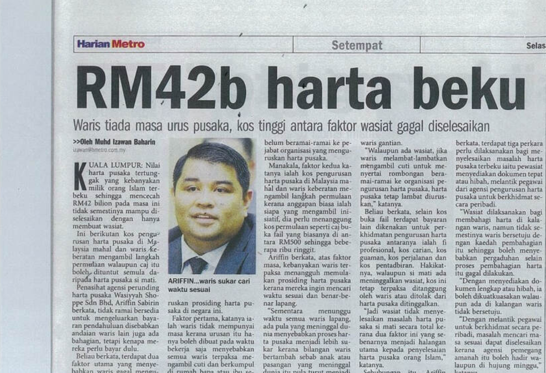 Apabila berlakunya kematian,semua harta (i.e.rumah, tanah, kereta) & akaun si mati termasuk Simpanan Bank, Pelaburan-Pelaburan, ASB, EPF akan dibekukan bagi melalui proses wasiat dan faraid.