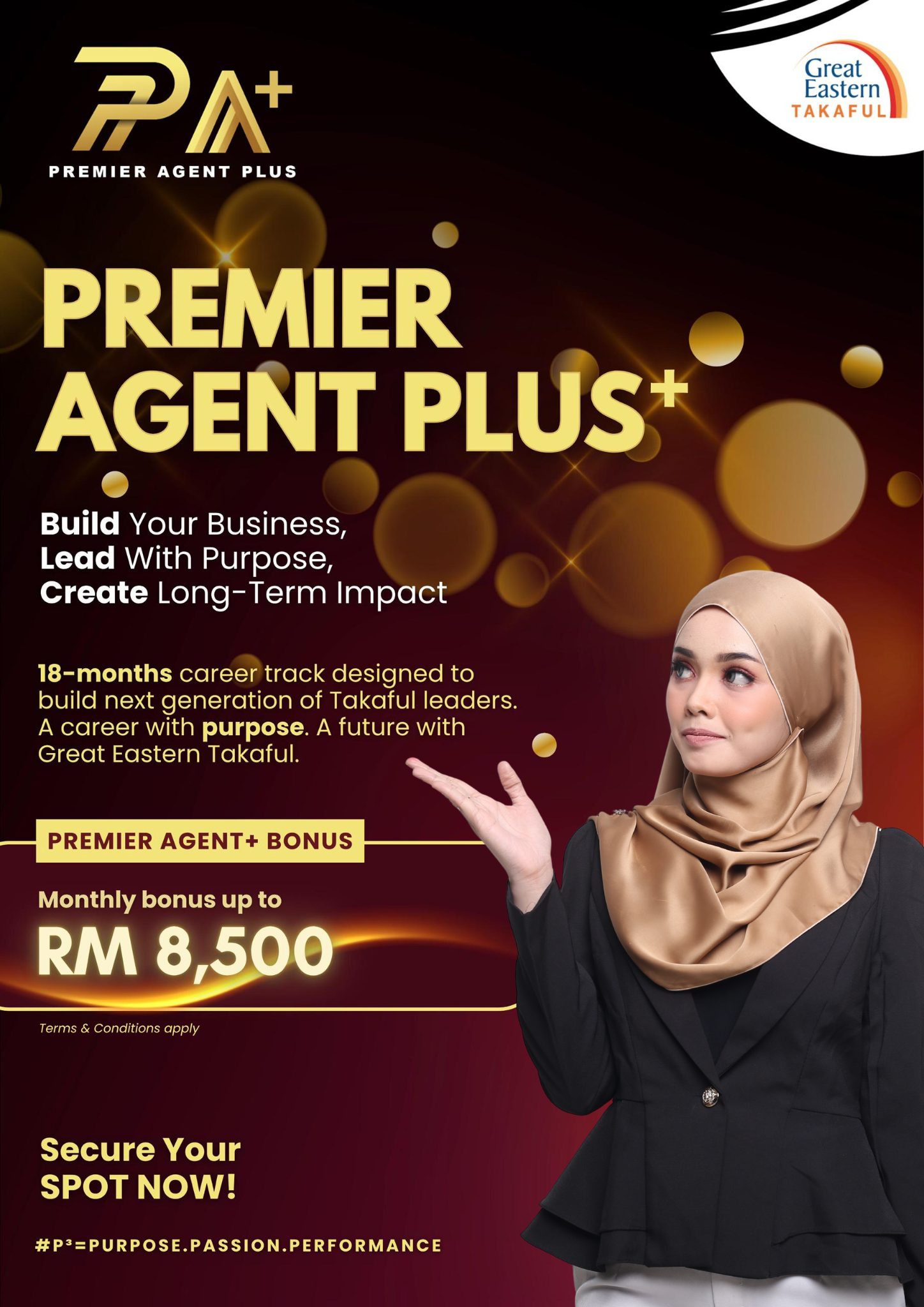 Kini anda berpeluang membina kerjaya dan menjana pendapatan lumayan melalui industri Takaful bersama Great Eastern Takaful melalui program terbaru — Premier Agent Plus+.
